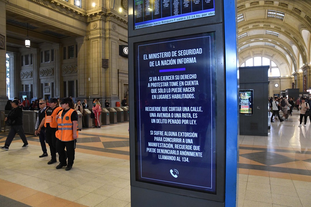 En el mismo sentido que las carteras, la cartera dependiente de Bullrich replicó los mensajes por los altoparlantes de diferentes estaciones del conurbano bonaerense. El mensaje fue claro y contundente: aquellos que se movilicen hoy, en caso de ejercer el derecho a protestar, «solo lo pueden hacer en lugares habilitados porque cortar una calle es un delito penado por ley».