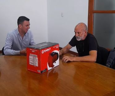 Carlos Siri⚕fue vecino de Chos Malal, sus hijos nacieron en el corral amarillo. El intendente Nicolás Albarracín recibió un regalo del profesional. “Un pedazo de su corazón le pertenece a nuestro querido corral amarillo para siempre, y que por eso quería hacer un aporte al municipio”, dijo el jefe comunal. Acotó que les regaló una bomba de riego para instalar en la Plaza San Martín.