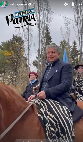Llegó a caballo acompañado por el intendente que, en su anterior gestión, acostumbraba a la demostración ecuestre en actos oficiales. El gobernador Rolando Figueroa siguió con la modalidad que tuvieron todos, menos uno, los gobernadores de la provincia. Dicen que eligió Centenario porque Esteban Cimolai le podía hacer el aguante. Hubo envidia de propios y del MPN porque hubiera llamado a un concurso a ver quién se animaba.
