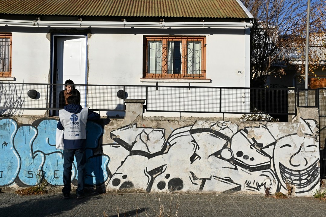 Con solo 22 años, Agustina Calfín decidió anotarse como censista por primera vez porque le “convenció” la iniciativa. Cuando termina de entrevistar a la mujer, la joven se sienta en la vereda -no en cualquier lugar, busca el sector donde pega el sol porque el frío se siente-, para organizar sus planillas mientras aguarda que le abran de otra casa. “Tenemos que volver dos veces si no nos atienden”, aclaró.