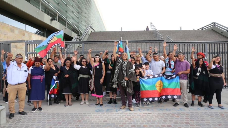 Comunidades mapuches reclamaron hoy en la Ciudad Judicial de Neuquén.