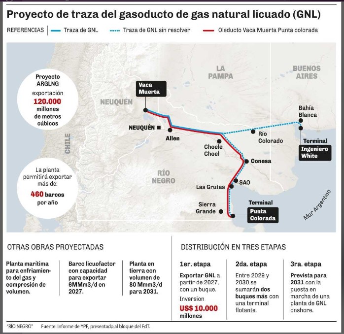 La posible localización de otra megainversión de YPF en Río Negro, además del oleoducto Vaca Muerta-Punta Colorada, abrió una competencia con Buenos Aires, que descontaba la construcción del proyecto de exportación de GNL en Bahía Blanca.