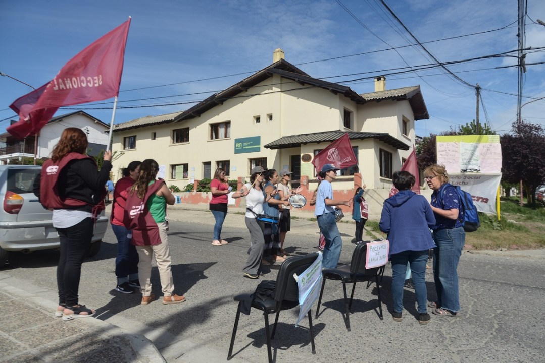 Las trabajadoras del Equipo de Atención en Violencia (SAT) en Bariloche, dependiente de la Secretaría de Desarrollo Humano de Río Negro realizan una retención de servicios desde ayer hasta mañana en la sede del organismo en Albarracín y Ruiz Moreno.