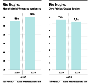 La aceleración de precios esperada a partir de julio licuará parte del gasto salarial que impacta hoy en forma importante en los presupuestos de Río Negro (representa el 60% de los ingresos corrientes) y Neuquén (56%).
