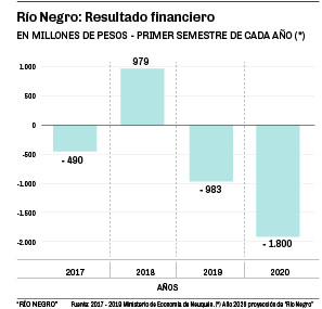 Sin embargo, la ola del tsunami del coronavirus llegará a las costas rionegrinas. Las proyecciones por caída de regalías, menores ingresos propios y transferencias por coparticipación podrían afectar a las arcas Provinciales en más de 2.800 millones de pesos. Las estimaciones preliminares –con los cierres parciales de mayo en mano– proyectan que el déficit sobre el fin del primer semestre del año se lo ubicará en torno a los 1.800 millones de pesos. Un número que no es del todo malo, teniendo en cuenta el contexto económico en el que se encuentra el país, pero que puede profundizarse en forma importante durante la segunda parte del año si la economía provincial no comienza a recuperarse.