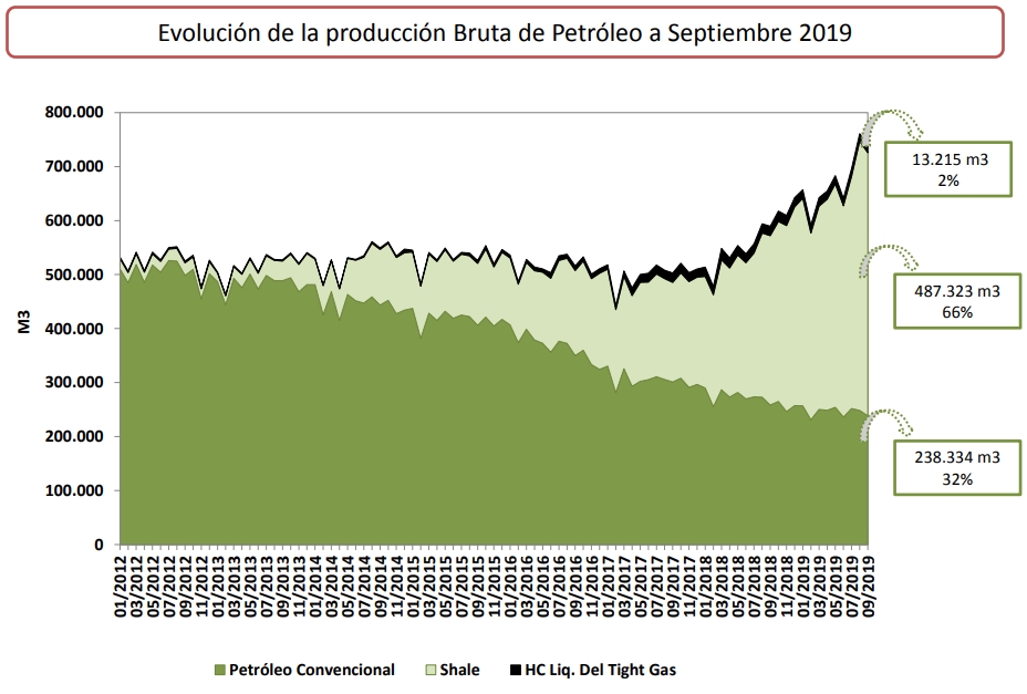 El impulso de Vaca Muerta en este récord es notable dado que mientras la producción convencional continúa declinando, la extracción diaria marcada en septiembre representa un incremento del 25,31% sobre el mismo mes del año pasado en función del impulso del shale.