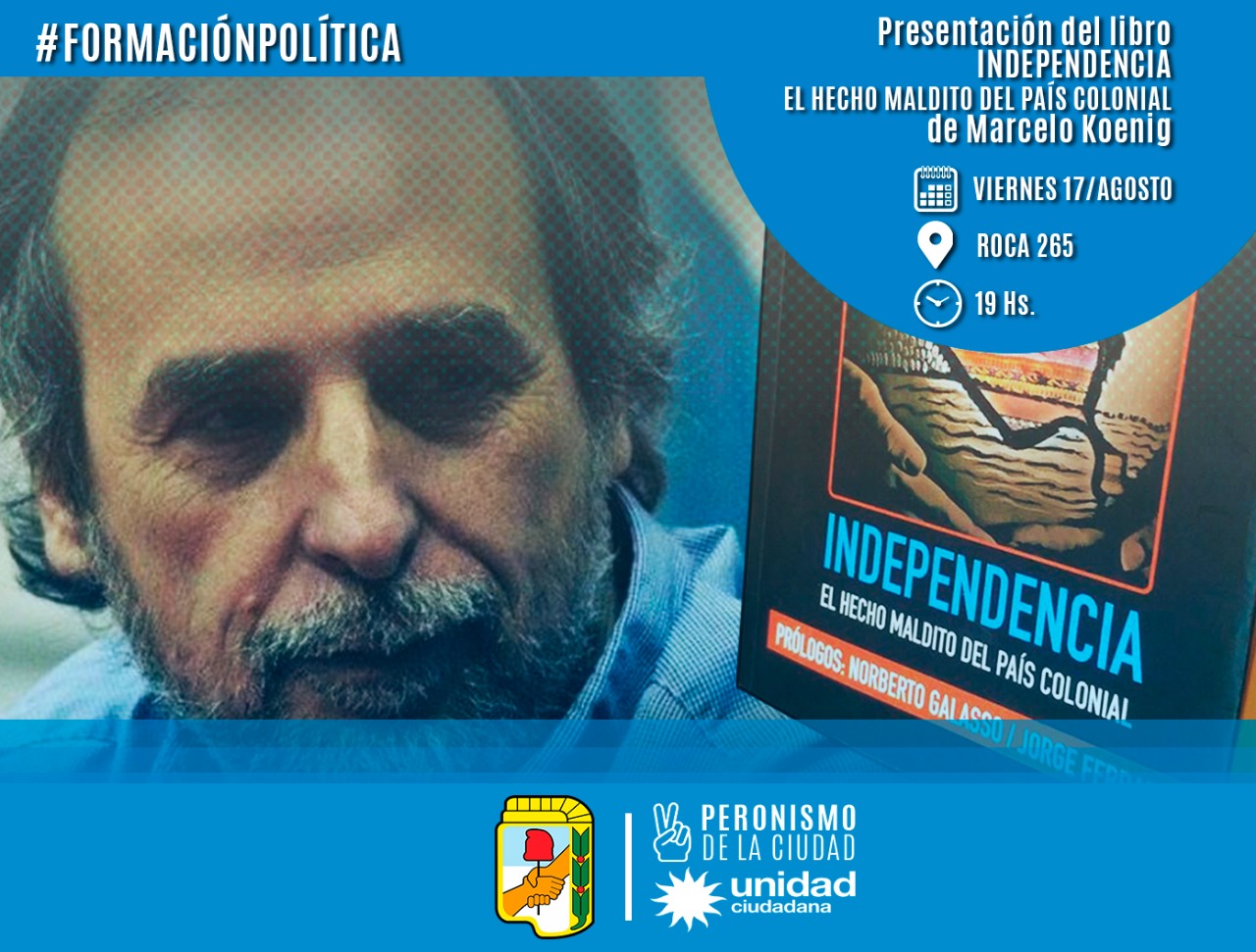 El referente de la corriente peronista “Descamisados”, Marcelo Koenig presentará su libro: “Independencia: el hecho maldito del país colonial”, el viernes 17 de e agosto, a las 19 horas, en la sede del Partido Justicialista, Roca 265.