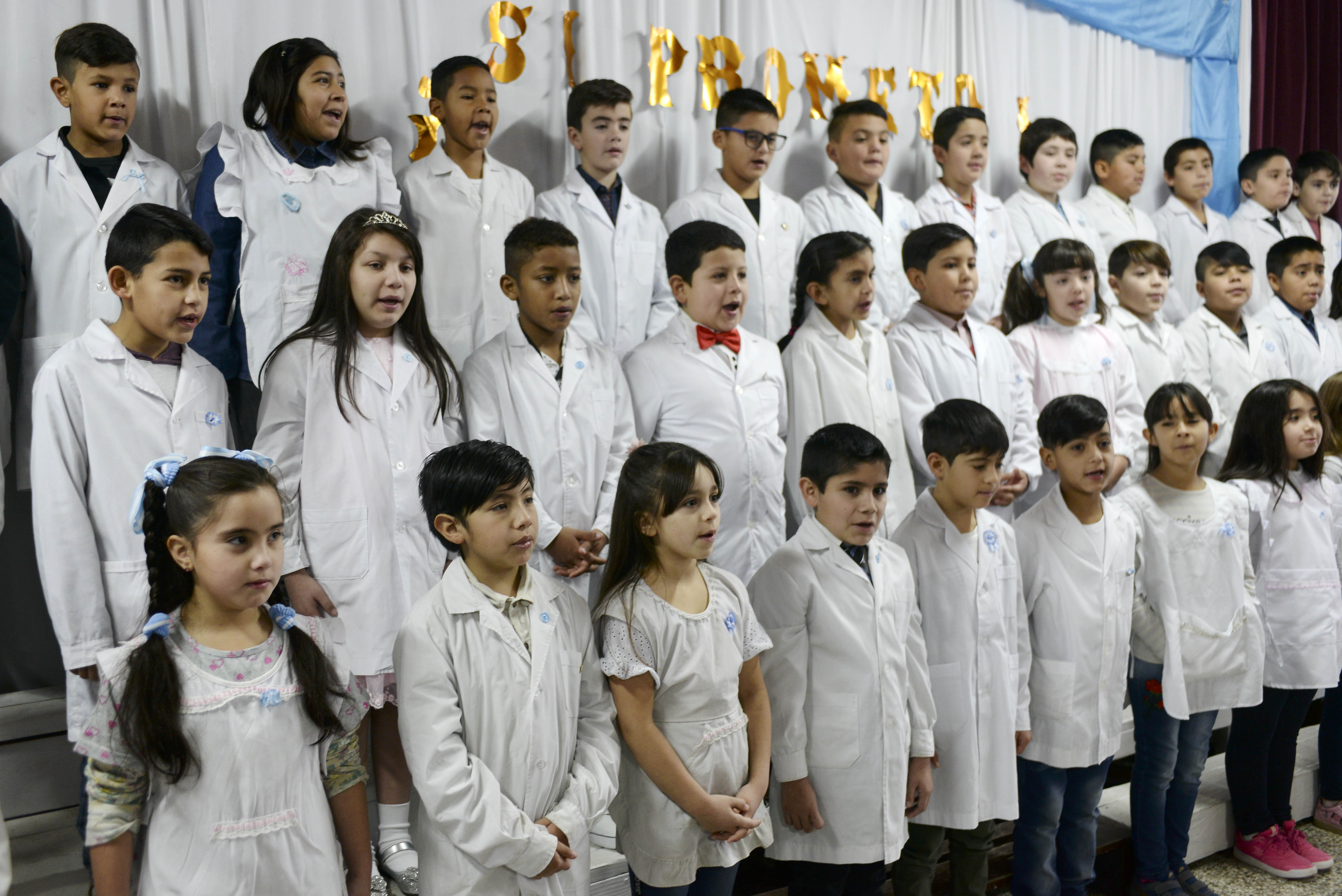Isaías y Aucán, son alumnos de 4to grado de la histórica escuela de la costanera de Bariloche quienes junto a otros 41 compañeros de curso, hoy prometieron lealtad a la bandera Argentina como parte de las actividades del Día de la Bandera que se conmemora mañana en homenaje al creador de la insignia, Manuel Belgrano.