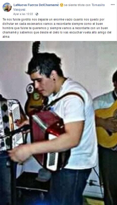 La víctima vivía desde hacía poco tiempo en la localidad, ya que era oriundo de Villa la Angostura. Sus conocidos lo recordaron en las redes sociales, resaltando sus habilidades como músico chamamecero.