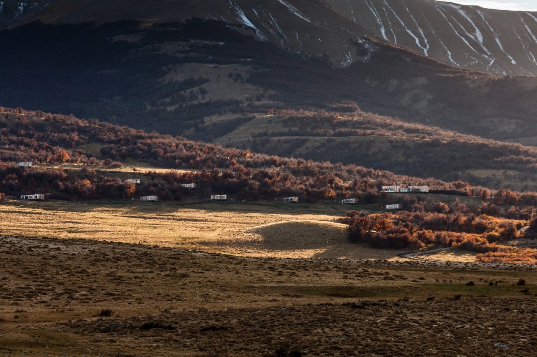 La premisa fue mimetizar la construcción dentro de su entorno, para no imponerse sino para integrarse a él. “Por ello, la serie de unidades aisladas permiten a los huéspedes, al mismo tiempo, tener una experiencia completamente privada. Cada villa goza de vistas despejadas a las torres, al lago Sarmiento o a la estepa patagónica”.