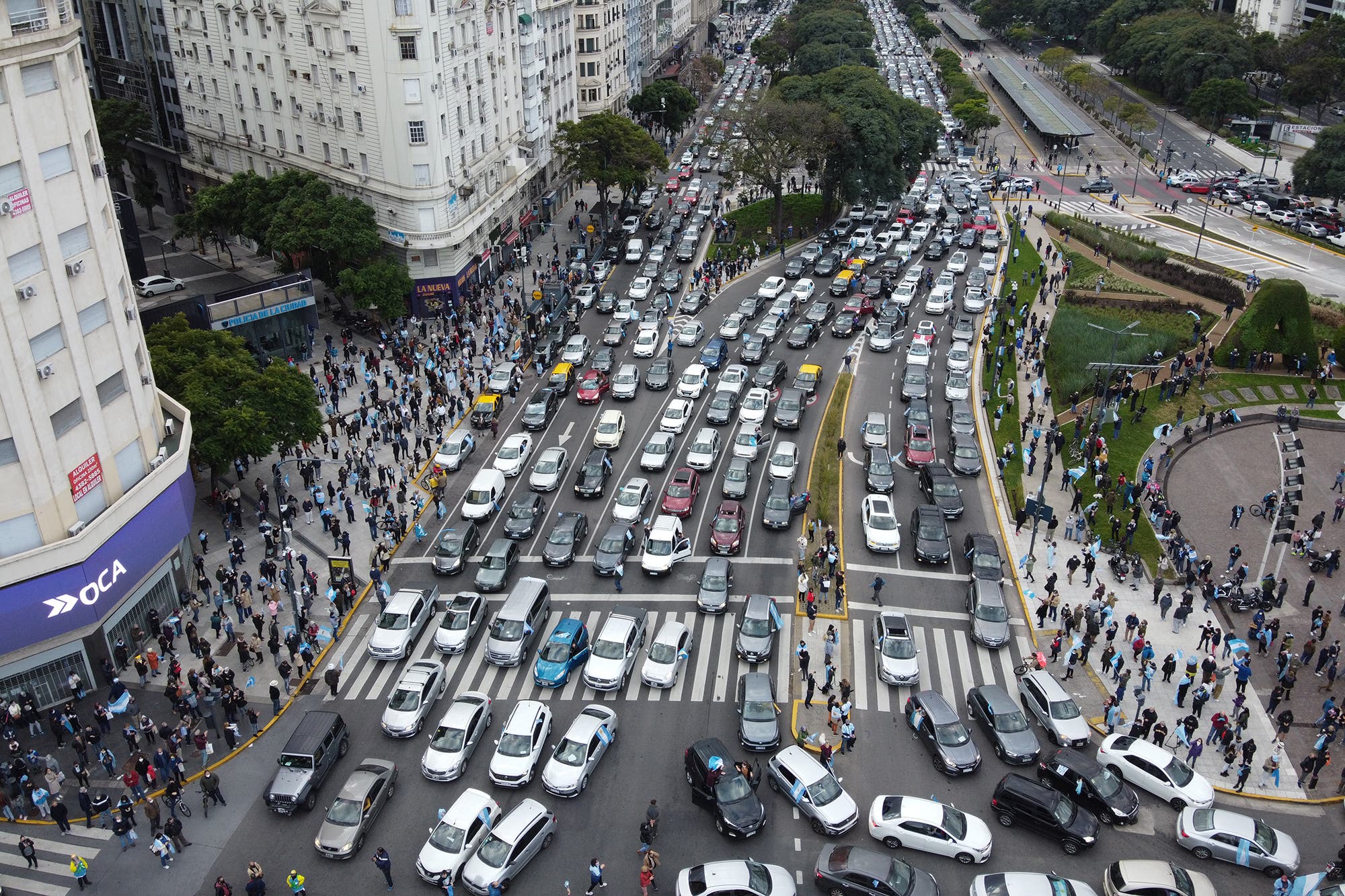 En el recorrido por la avenida Argentina entre Roca y Carlos H. Rodríguez, Alberti y Ministro González, los automovilistas agitaban banderas argentinas, tocaban bocina e inclusive algunos llevaron ollas para hacer más ruido.