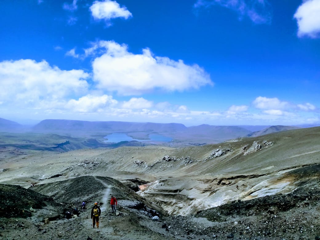 En la primera parte del recorrido se pueden apreciar las lagunas Las Mellizas y una pequeña usina geotérmica. A partir de allí la caminata comienza muy suave atravesando las estribaciones del volcán y permitiendo disfrutar de hermosas vistas. Luego la pendiente cambia y la inclinación es de unos 30 grados, requiriendo mayor esfuerzo y atención. Se atraviesa el acarreo de cenizas, que es el trayecto de mayor esfuerzo físico ya que en el ascenso uno se hunde levemente en las cenizas.
