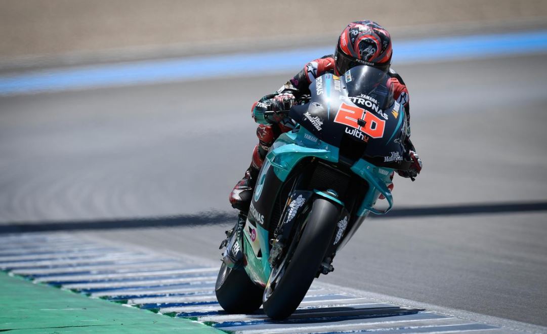 Quartararo quedó afuera de los diez mejores en la primera tanda, que dominó Takaaki Nakagami, pero en la segunda el piloto del equipo satélite de Yamaha se quedó con el mejor tiempo.
