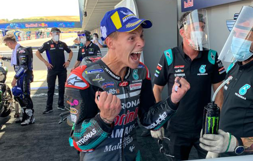 Fabio Quartararo estrenó hoy su casillero de victorias en MotoGP en el circuito de Jerez de la Frontera, donde aprovechó un error del campeón Marc Márquez, quien después de llevar adelante una espectacular remontada sufrió un espectacular accidente a dos vueltas del final.