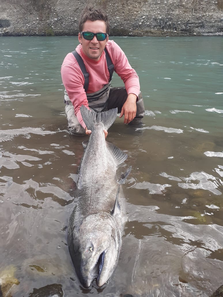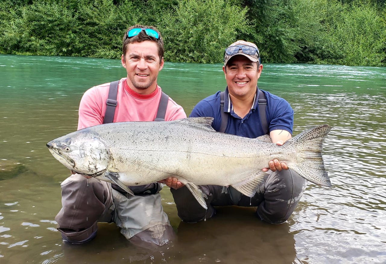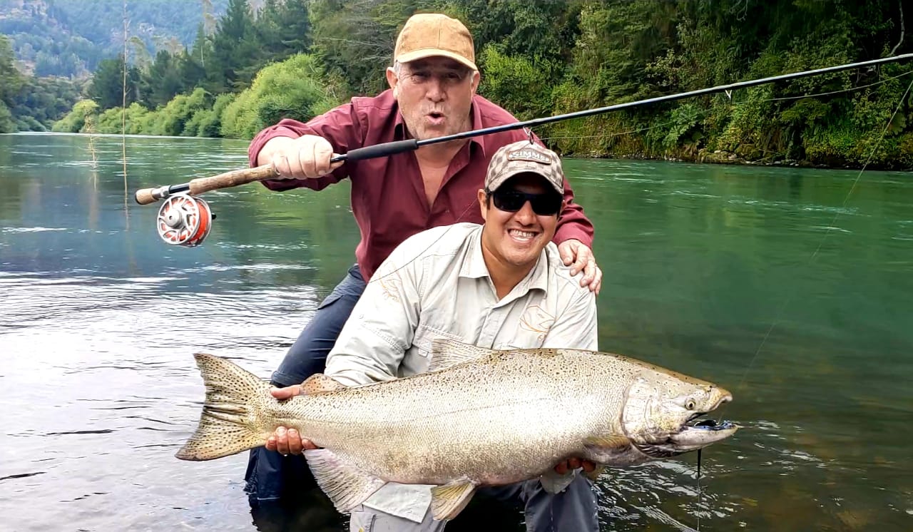 Lo que se recomienda es flotarlo en bote. Ya que es un río caudaloso y las costas profundas. Hay pocos accesos de pesca para pescarlo de costa. En una flotada del río se recorre entre 18 y 20 km durante el día. Con Diego pescamos en total 5 salmones. Aunque se permite sacrificar uno por día los devolvimos todos».