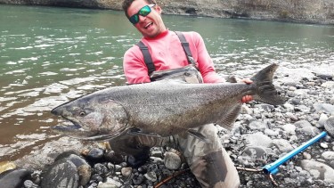 Es una hembra de la variedad salmón chinook, que por lo general pesan entre 8 y 10 kilos (los machos hasta 22). Es un muy buscado por los pescadores deportivos por la pelea explosiva que presenta. La sacó Pablo Oscar Blasco que anduvo por Chile con su amigo de Centenario Diego Hernández. Acá cuenta la historia.