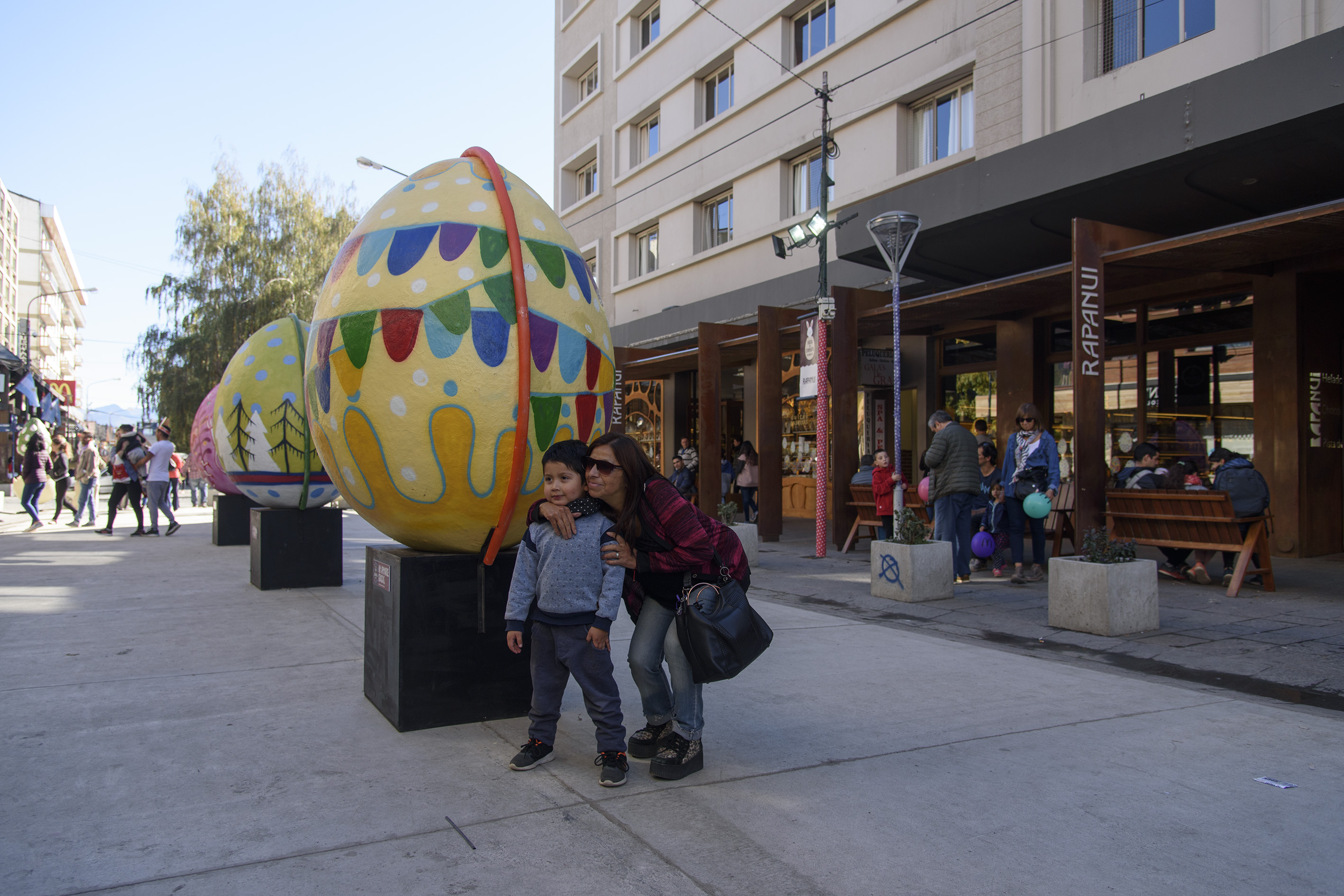 Desde la intersección con Villegas, se inicia el Paseo del Chocolate con los huevos gigantes de colores y figuras llamativas, pintados por artistas plásticos, que forman parte de las imágenes que por estos días dan la vuelta al mundo en las redes sociales de cada turista y residente que participa de la Fiesta del Chocolate.
