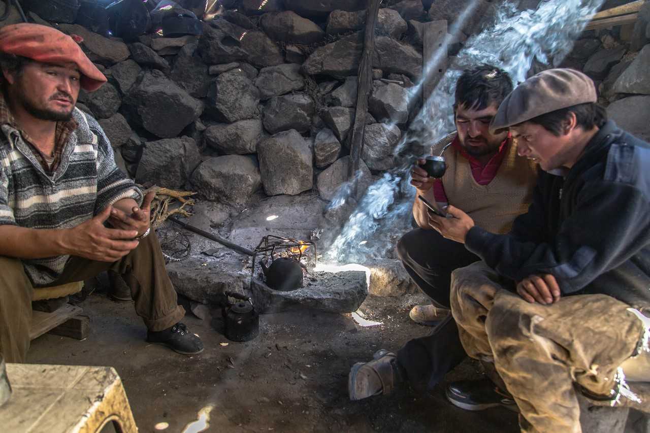 – Los descubrí en diciembre del 79 cuando fui por primera vez al norte neuquino con un amigo en moto…En una de esas huellas se nos apareció una familia completa arreando su piño….Jamas me olvido ese momento, lo tengo grabado. Desde hace unos 5 ó 6 años no pasa un mes sin que vaya, he llegado a ir hasta 5 veces en un mes, sobre todo en la época de la trashumancia. He dormido con ellos a la intemperie, he comido y junto a Liliana hemos compartido hermosas mateadas con tortas fritas. No es difícil conocerlos, su cordialidad, su alegría, su vitalidad y hospitalidad…abren su casa y su vida. Es la llave de la relación. No olvidemos a sus perros, a su caballo, a su burro, a su piño, su arreador, su sombrero, su facón, su cielo y su montaña. Ellos, solo ellos, construyen la belleza de este norte.