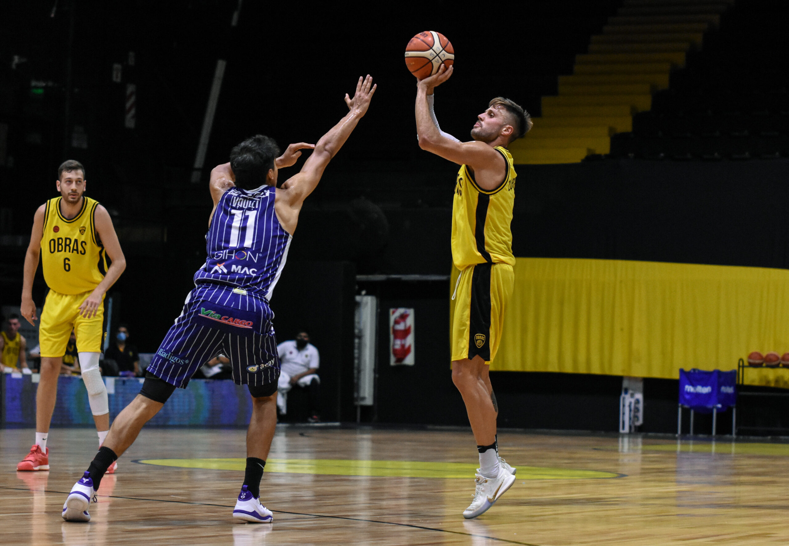 En otro partido, Platense doblegó a Gimnasia y Esgrima (Comodoro Rivadavia), por 63 a 60, en el estadio de Ferro, con 17 puntos del pivote Julián Aprea.