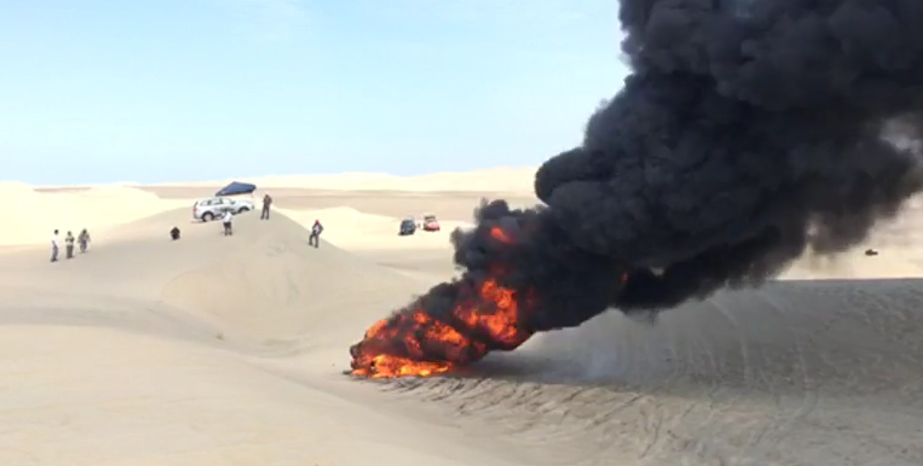 Según lo comentado por los fanáticos que estaban en el lugar, la camioneta llegó a una zona de dunas prendida fuego, que fue observado por Pelayo, el navegante de Alicia.