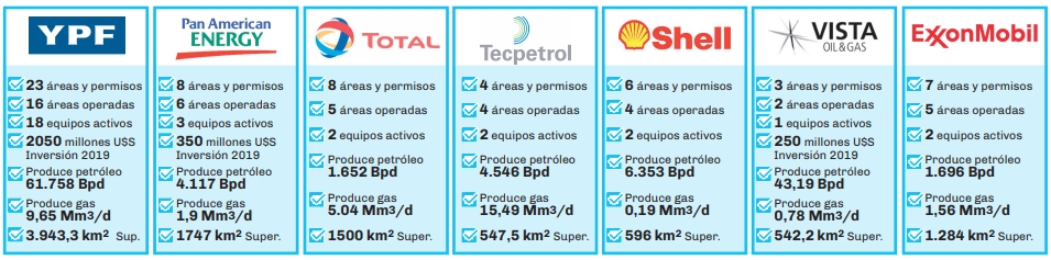 En la formación no convencional son 20 las empresas que tienen concesiones. La mitad de las firmas son extranjeras pero la mayor producción tanto en gas como en petróleo está en manos de operadoras nacionales.