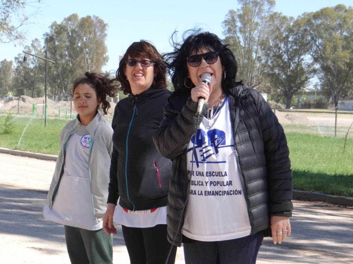 La titular del gremio docente Unter Patricia Cetera, junto a docentes y padres, participó del acto.