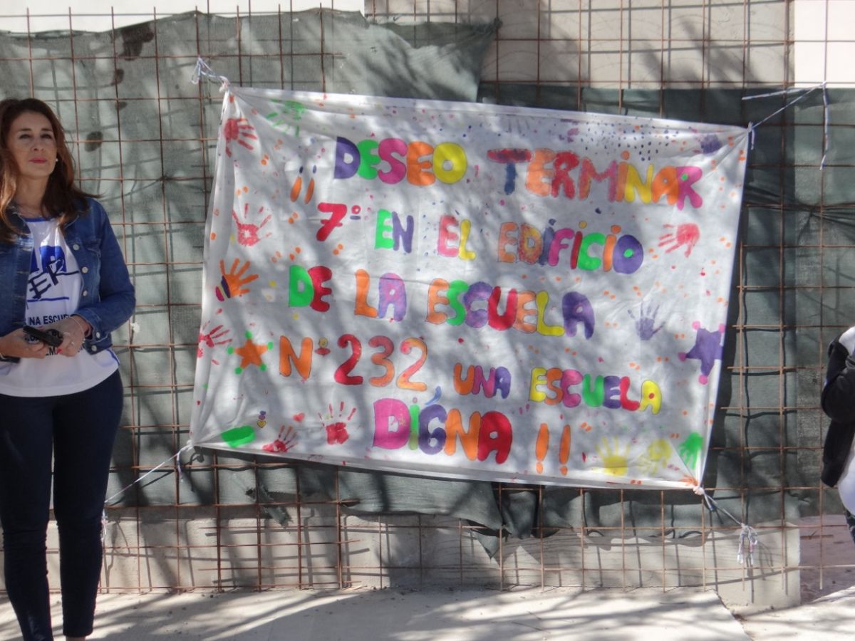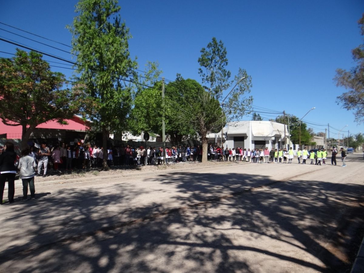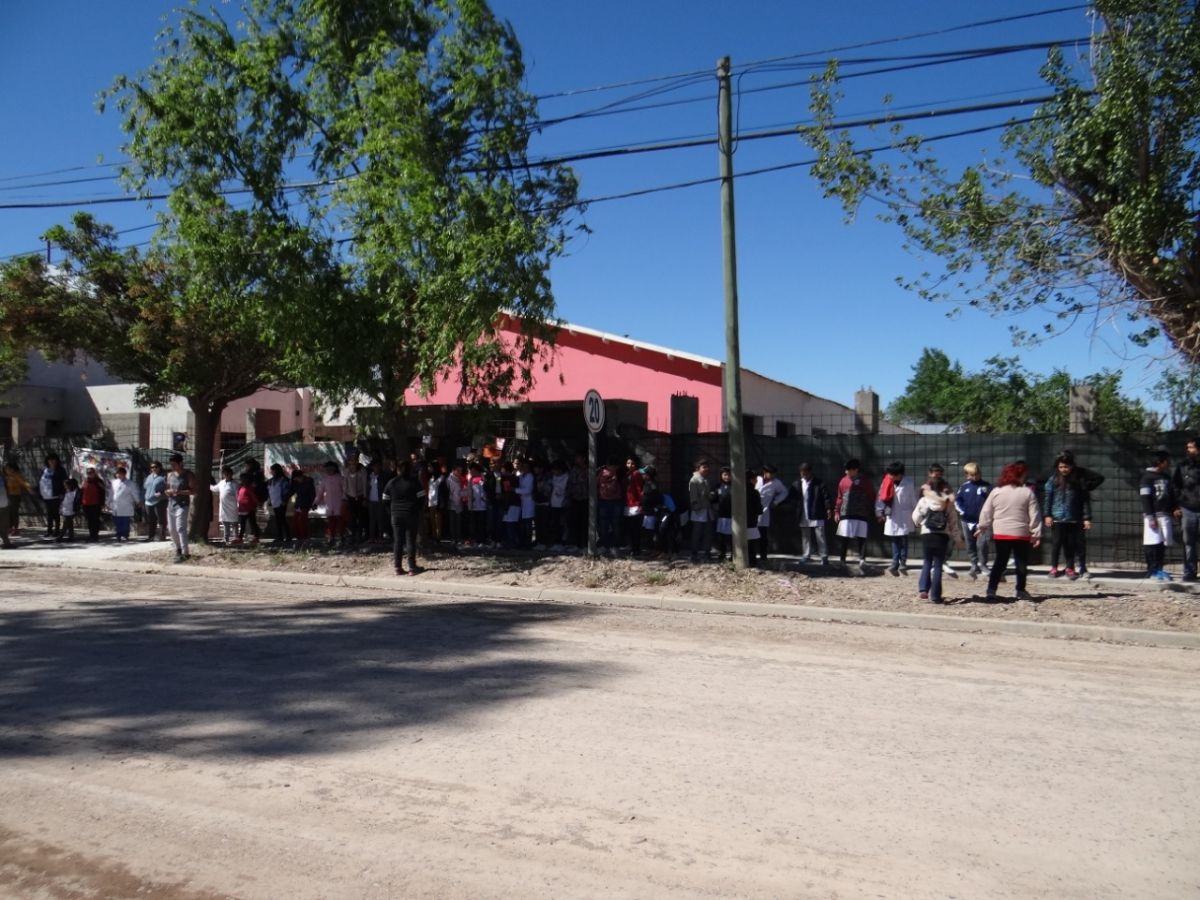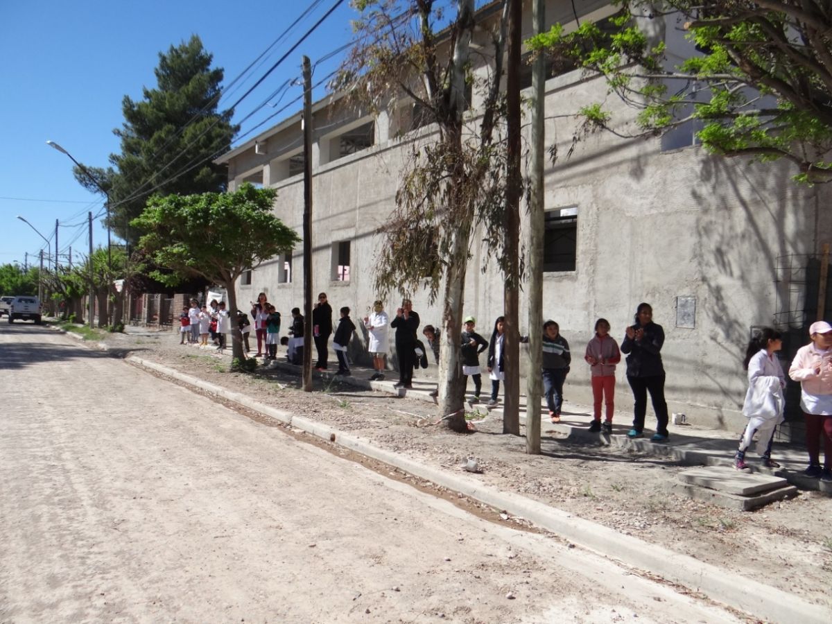Realizaron, esta mañana, un abrazo simbólico a la escuela 232 de Huergo.