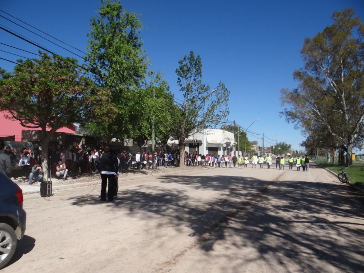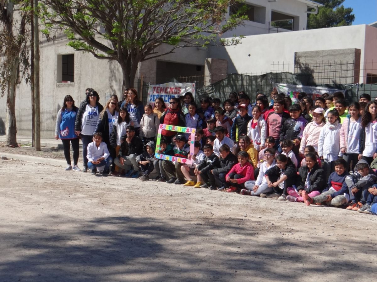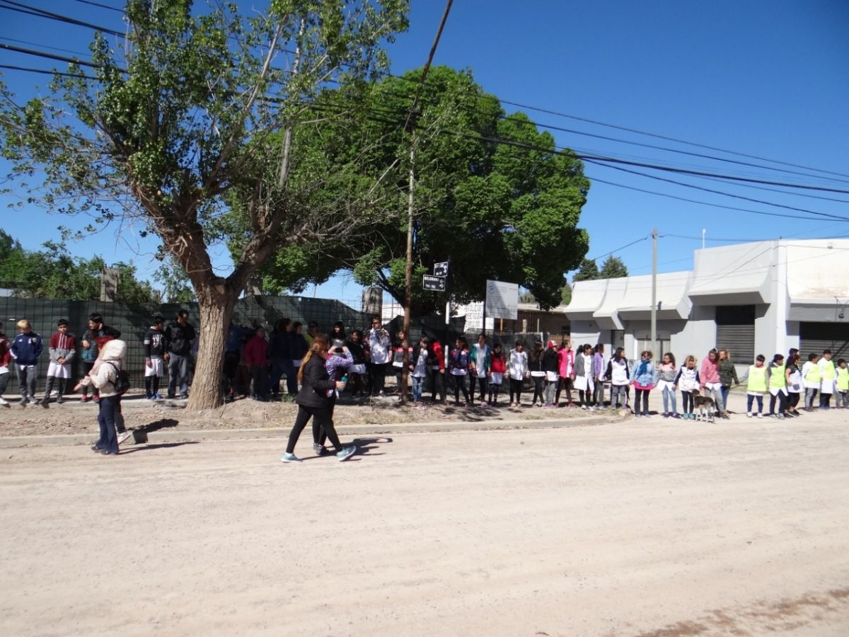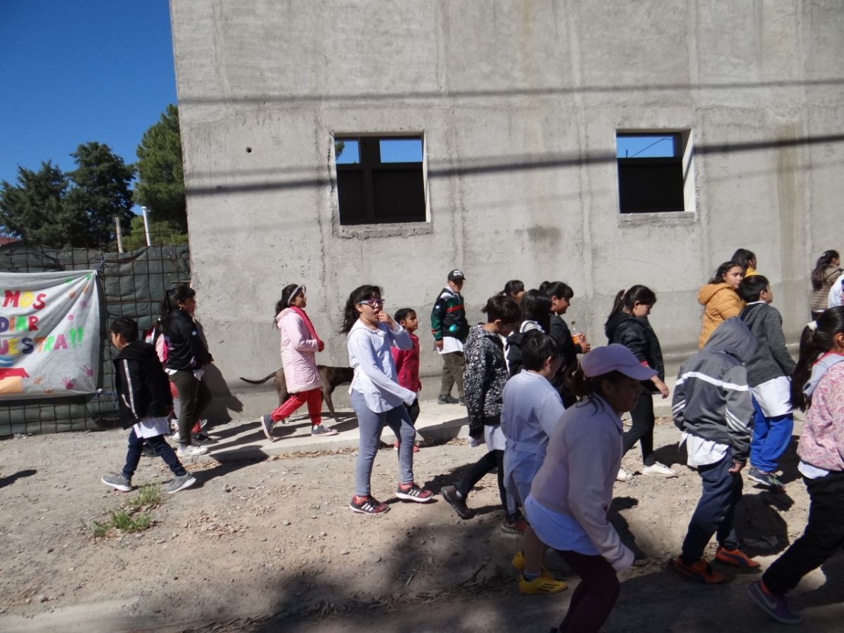 Realizaron, esta mañana, un abrazo simbólico a la escuela 232 de Huergo.