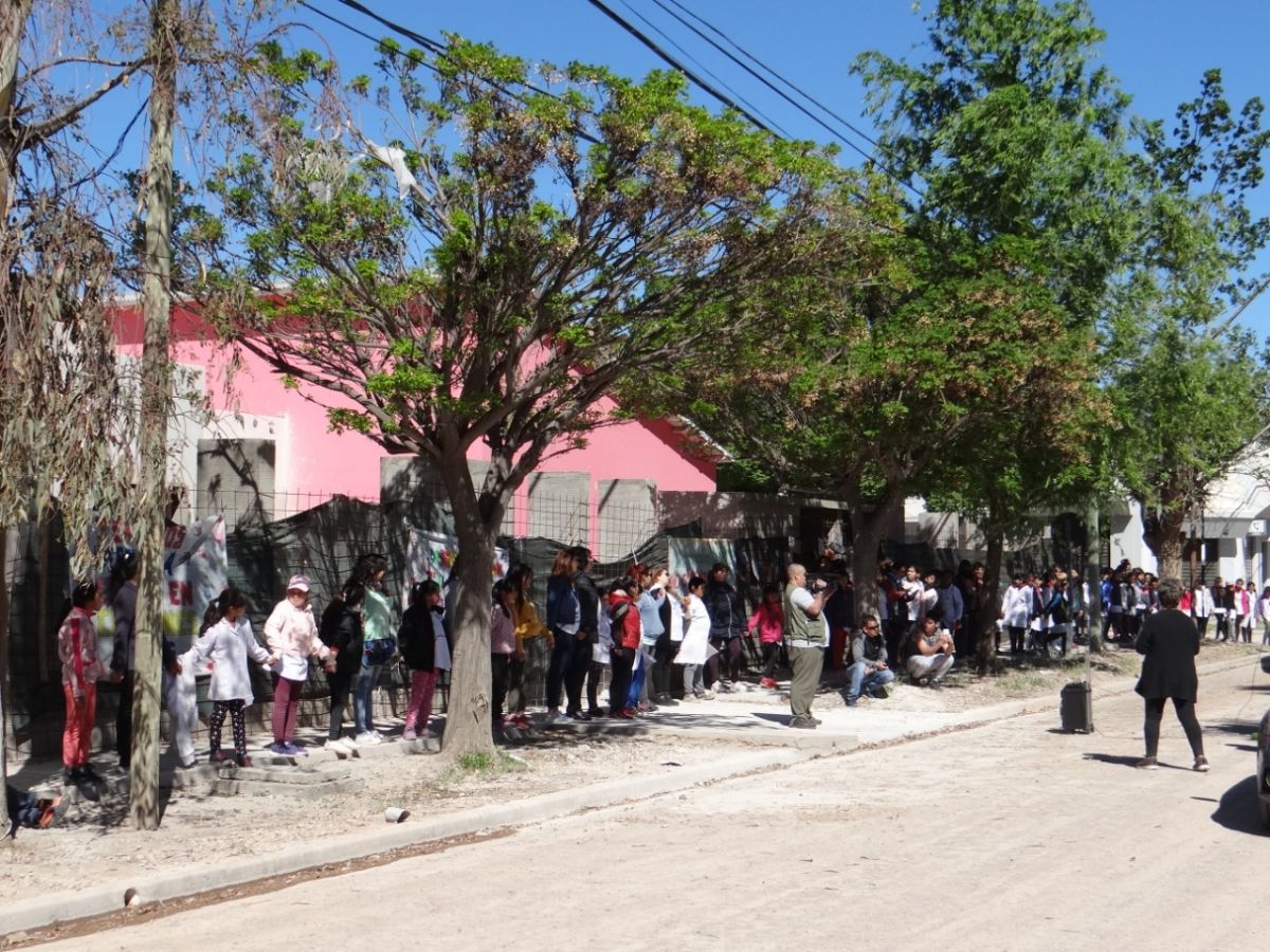 Realizaron un abrazo simbólico a la escuela 232 de Huergo