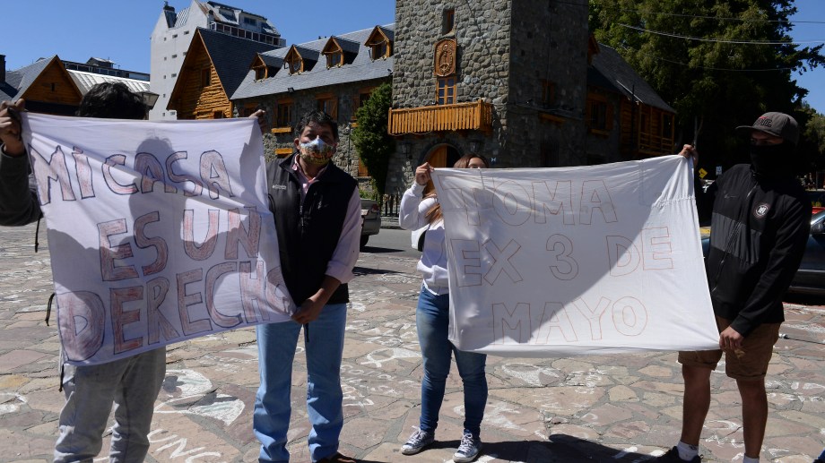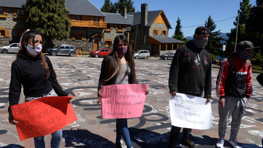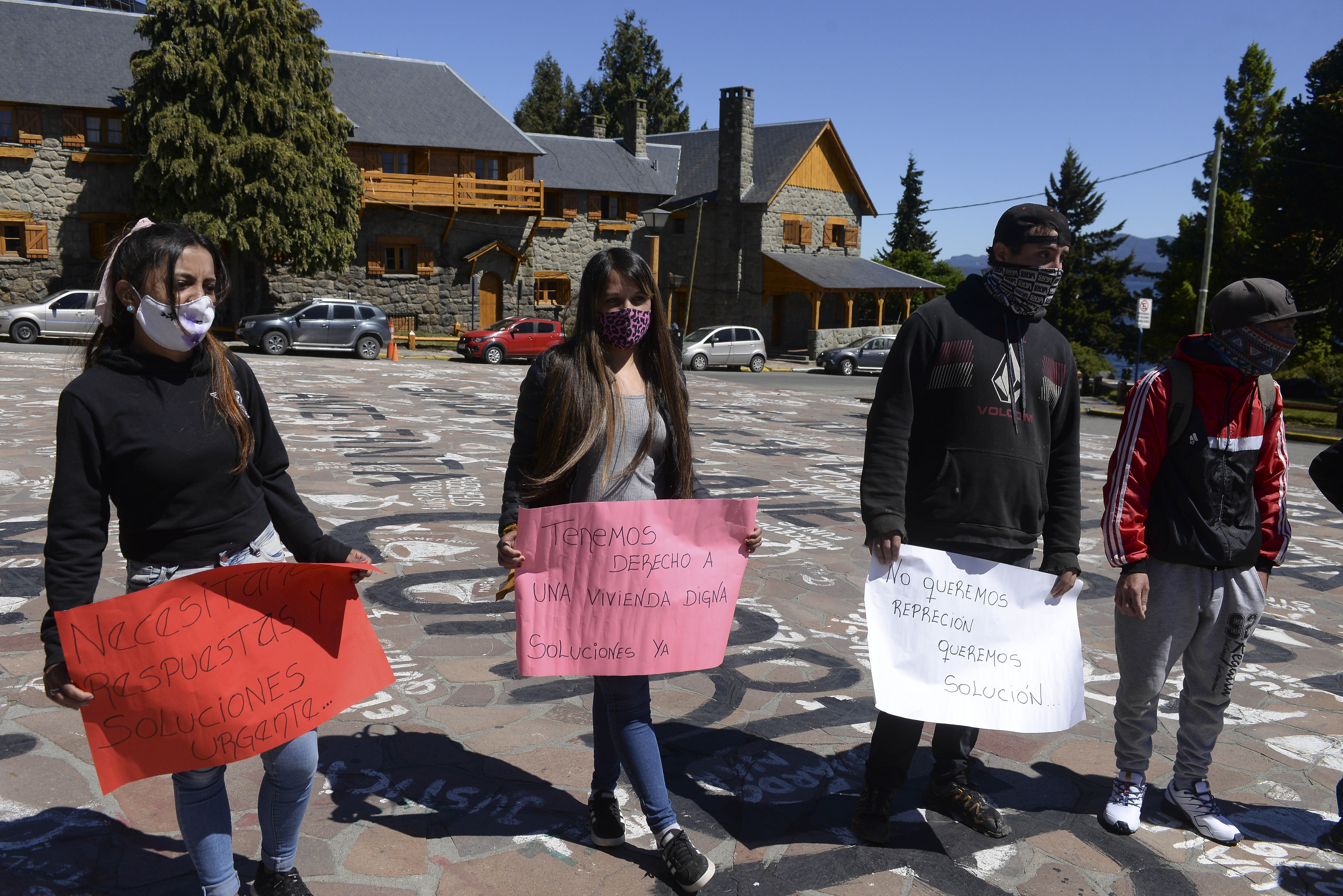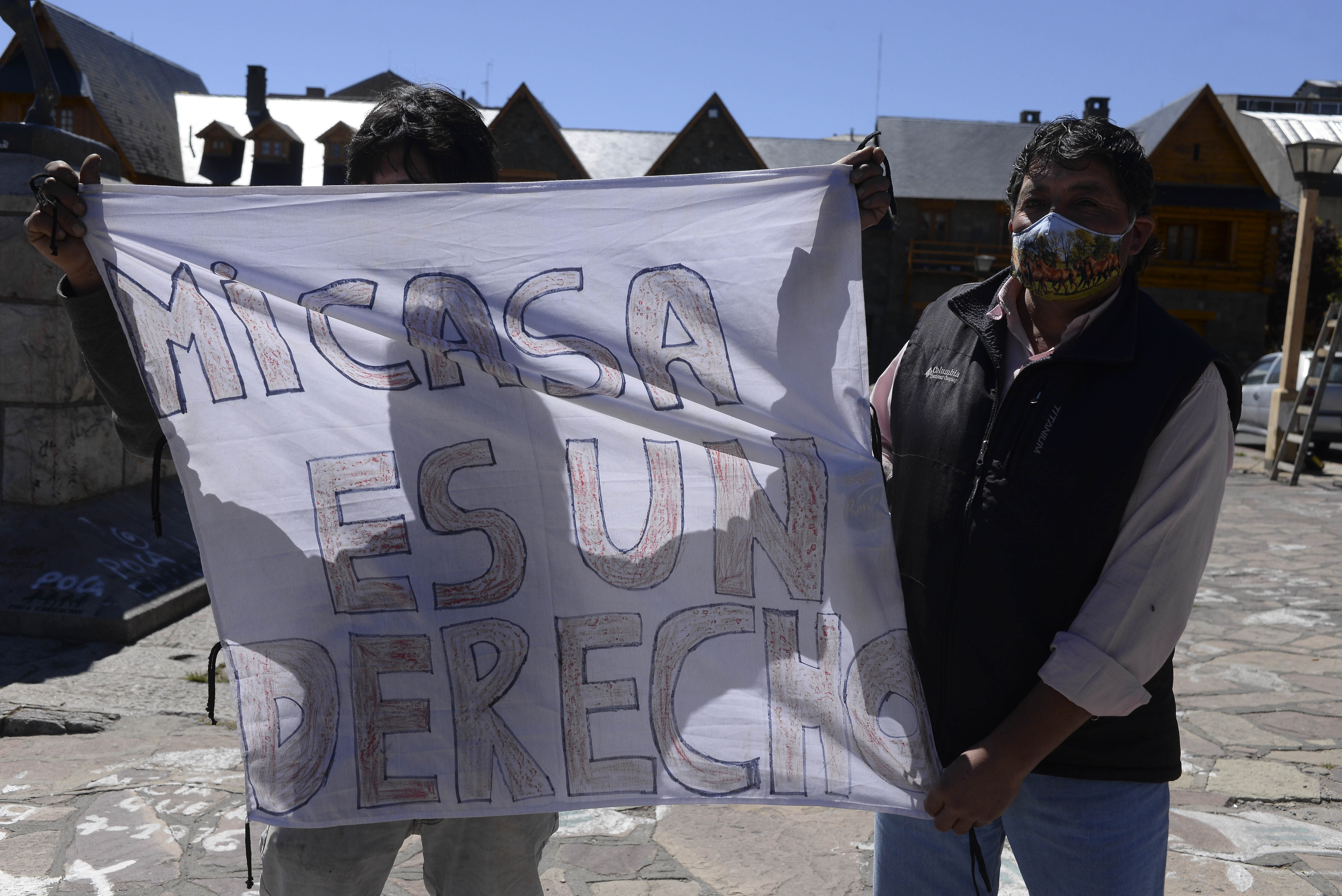 Integrantes de la mesa local de Barrios Populares de Bariloche se manifestaron en el Centro Cívico y denunciaron que la respuesta del estado a la emergencia habitacional es la "judicialización".