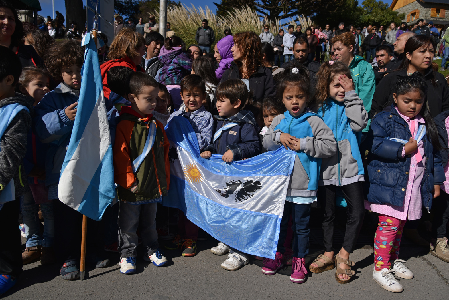 Desde distintos puntos del Centro Cívico, turistas y barilochenses participaron del acto para recordar los 35 años del desembarco de las tropas argentinas en Malvinas.