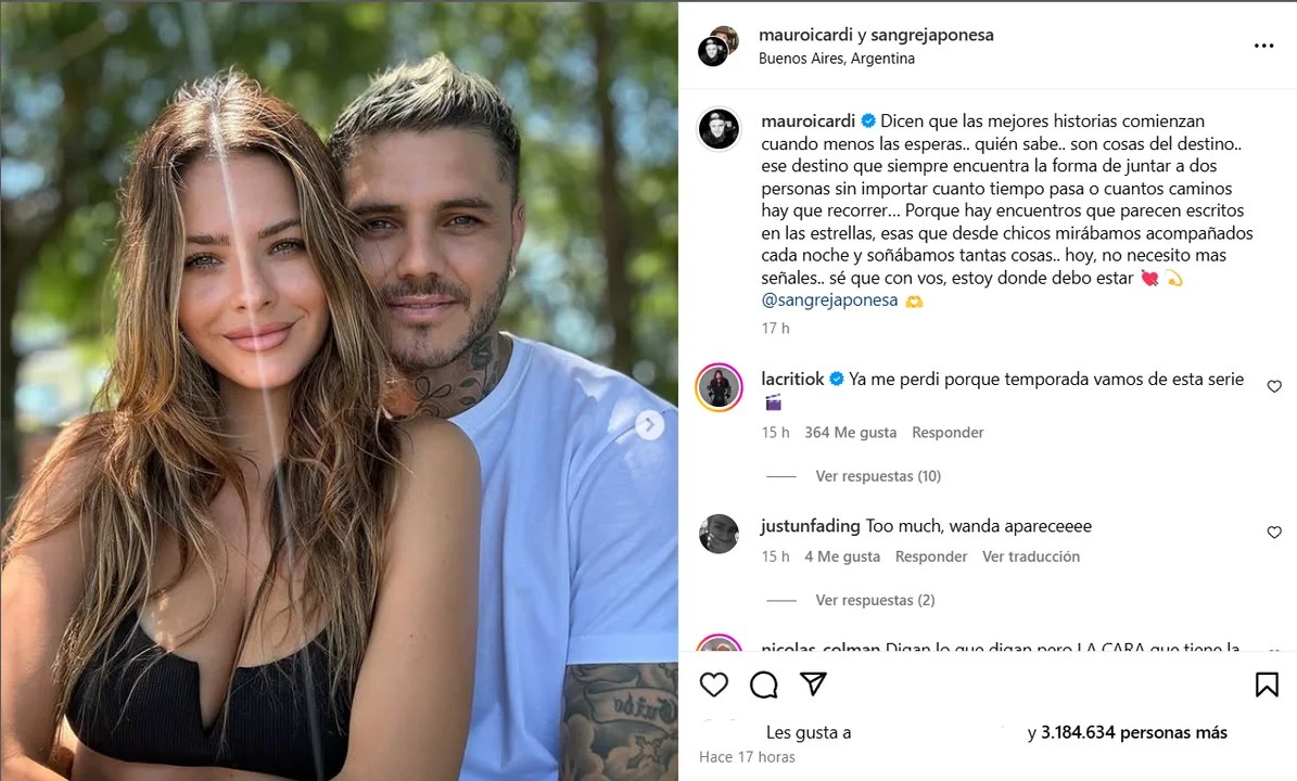 Tras hacer público su noviazgo, Mauro le puso punto final a su vínculo con su ex pareja y madre de sus hijas, Wanda Nara, y la dejó de seguir en Instagram. Sin embargo, aún mantiene públicas las fotos que se sacó con ella y su familia, siendo del 19 de junio del 2024 el último posteo donde posaron juntos.