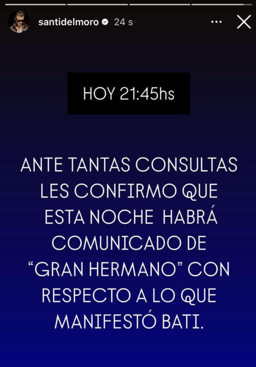 “Ante tantas consultas, les confirmo que esta noche habrá un comunicado de Gran Hermano con respecto a lo que manifestó Bati», escribió el conductor en sus historias de Instagram. La declaración desató una catarata de comentarios en redes sociales, donde muchos espectadores exigían la expulsión inmediata de la jugadora.