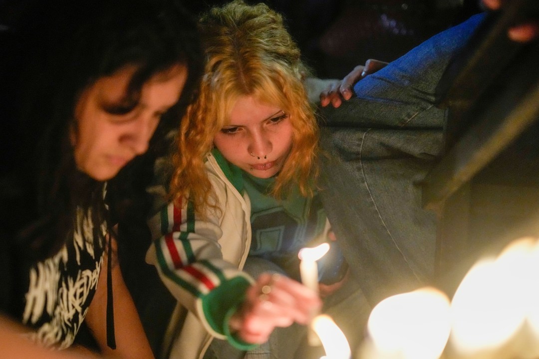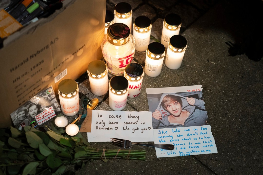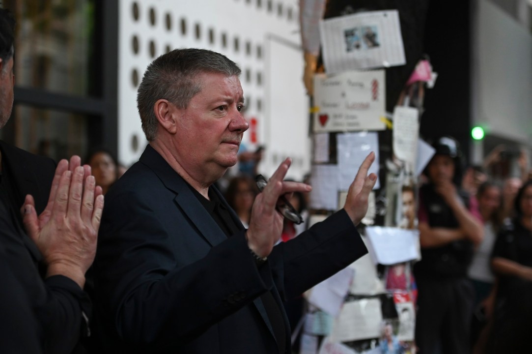 Tras permanecer algunos minutos en el lugar, Geoff Payne salió y miró detenidamente las fotos y leyó alguna de las cartas que dejaron las seguidoras de su hijo en un altar improvisado, con velas encendidas.