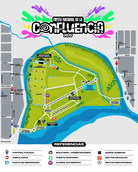 Todo está listo para disfrutar del segundo día de la Fiesta Nacional de la Confluencia 2025 en Neuquén. El evento ya tiene definido su mapa, con accesos, escenarios y distintos servicios clave para el público.