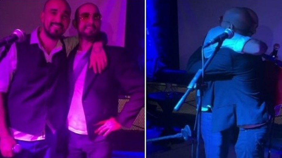 En las imágenes se puede ver incluso como el joven cantante se quita sus lentes para constatar si efectivamente era Pintos el que entraba en el local. Ya en el escenario, ambos se dieron un abrazo y el artista oriundo de Punta Alta siguió la canción que interpretaba su admirador.