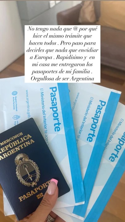 En otra historia de Instagram, la mediática mostró tres pasaportes junto al de ella, pero se desconoce si serían de sus dos hijas menores, que se rumoreaba partirían junto a Mauro Icardi para Turquía, o si de sus hijos adolescentes, producto de su matrimonio con Maxi López.
