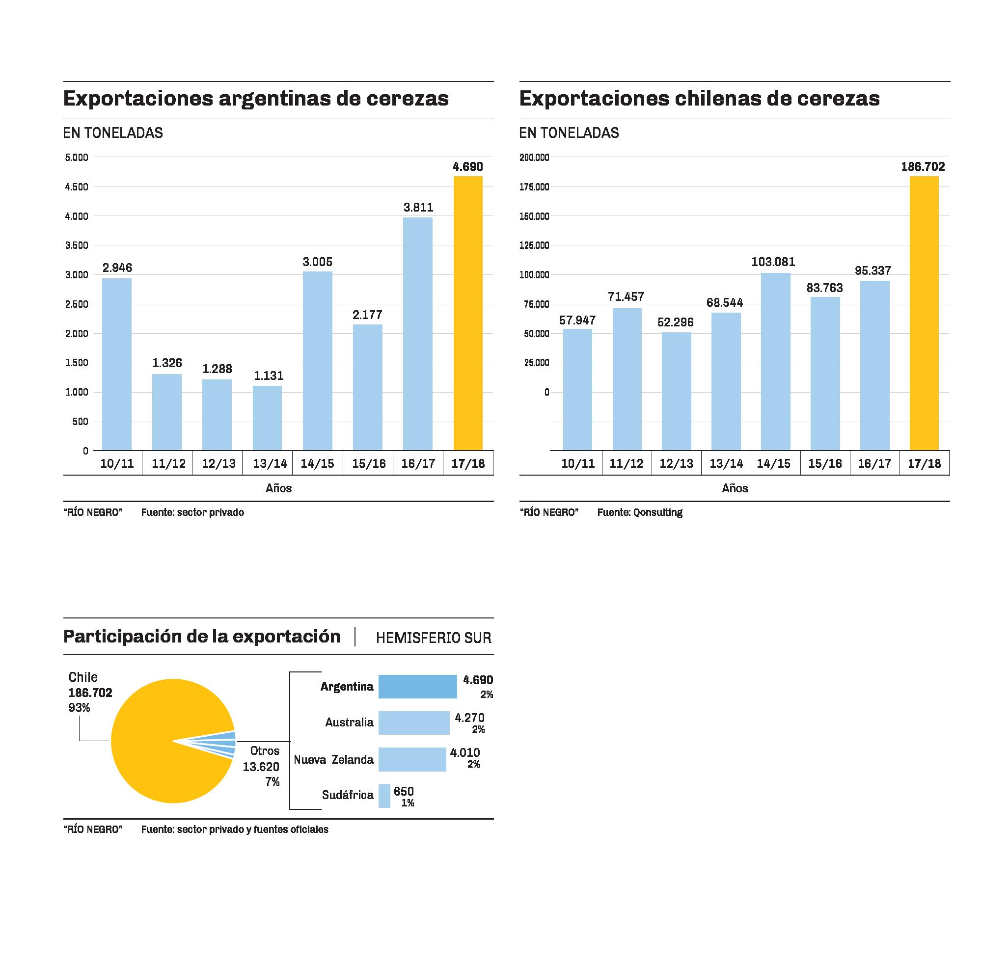 La apertura del mercado chino para la cereza argentina abre la posibilidad de generar una sinergia importante en el esquema productivo-comercial con nuestros vecinos chilenos, los mayores exportadores mundiales de esta especie (ve recuadro adjunto). Hoy el país trasandino no tiene posibilidades de expandir su frontera productiva por los escasez de tierras existentes. El agua es otra de sus limitantes. El acuerdo con China permitiría a la región del Valle de Río Negro y Neuquén ser receptora de nuevas inversiones que ya no pueden consolidarse en Chile por los problemas mencionados.