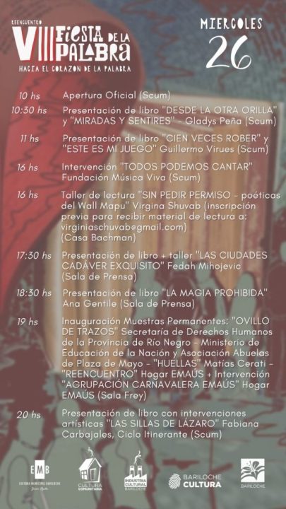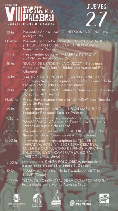 Hoy comienza la VIII Fiesta de la Palabra en Bariloche: mirá el programa