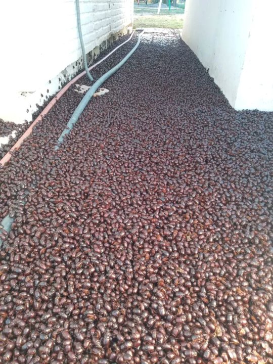 Una oleada de cascarudos se instaló en Santa Isabel, La Pampa. Las imágenes muestran una masa incontable, que ya dañó instalaciones.