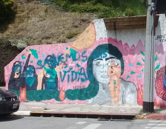 Según denunciaron las organizaciones, las pintadas sobre el mural realizado por mujeres de la agrupación AMMURA en el Día Internacional de la Mujer Trabajadora, fueron realizadas mientras grupos feministas aguardaban en vigilia en el Centro Cívico la sanción de la ley.