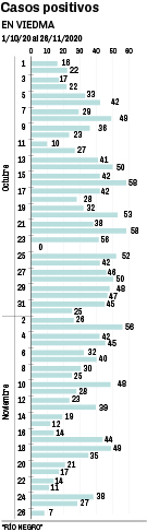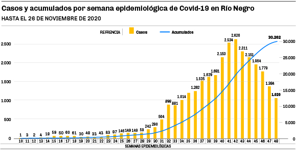 Río Negro completará hoy su semana epidemiológica 48 en el marco de la pandemia por covid-19. Y si continúa la tendencia que se registra desde mediados de octubre, los nuevos casos estarán en el nivel de la primera semana de septiembre, cuando se acumularon 1.535 contagios.