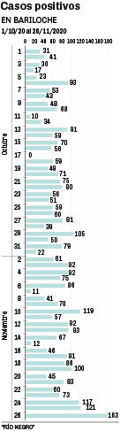 Río Negro termina noviembre con datos similares a los que registró en septiembre. Neuquén tuvo una abrupta caída, con un tercio de los contagios que hubo en octubre. A pesar de la tendencia, piden mantener los cuidados.