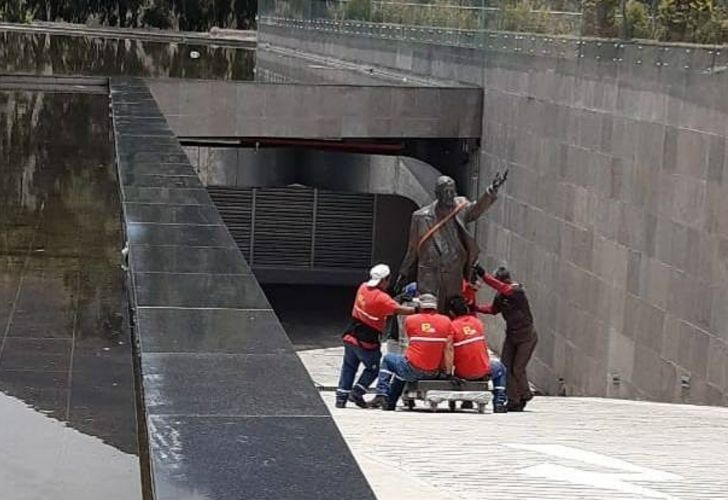 Retiraron el monumento a Néstor Kirchner que estaba en la sede de la Unasur
