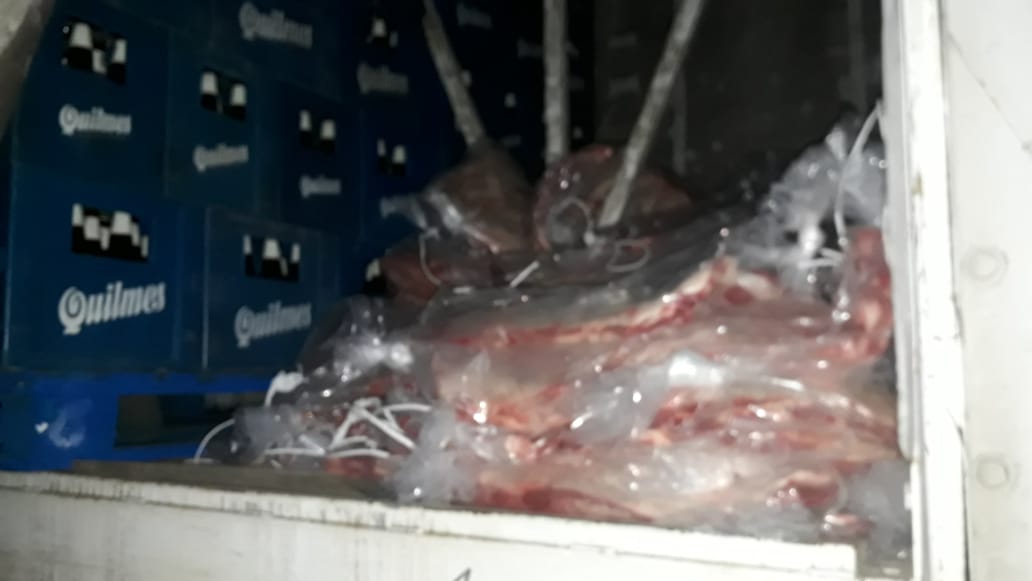 Personal del puesto de Seguridad Vial de Río Colorado junto al Senasa realizaron un decomiso de más de 720 kilos de carne vacuna con hueso. "Era transportando en forma irregular entre cajones de bebidas alcohólicas intentando trasgredir la barrera sanitaria", detallaron en un comunicado.