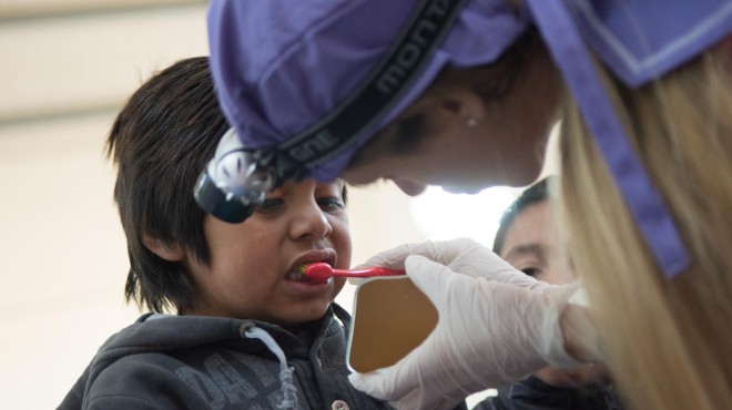 Cuando la combi y el consultorio móvil llegan a Colan Conhue, algo sacude la calma del mediodía en el pequeño paraje. Bruno apura el pedaleo de su bicicleta; Brian y Osvaldo dejan de jugar al fútbol; Alejandra Deccechis se para en la puerta de la Escuela albergue 216; los vecinos espían desde la calle de tierra. Todos esperaban la llegada del equipo de odontología de la Universidad Nacional de Río Negro hace dos meses, cuando una lluvia arruinó el camino de ripio que lo une con las ciudades cercanas y frustró el primer viaje a este lugar.