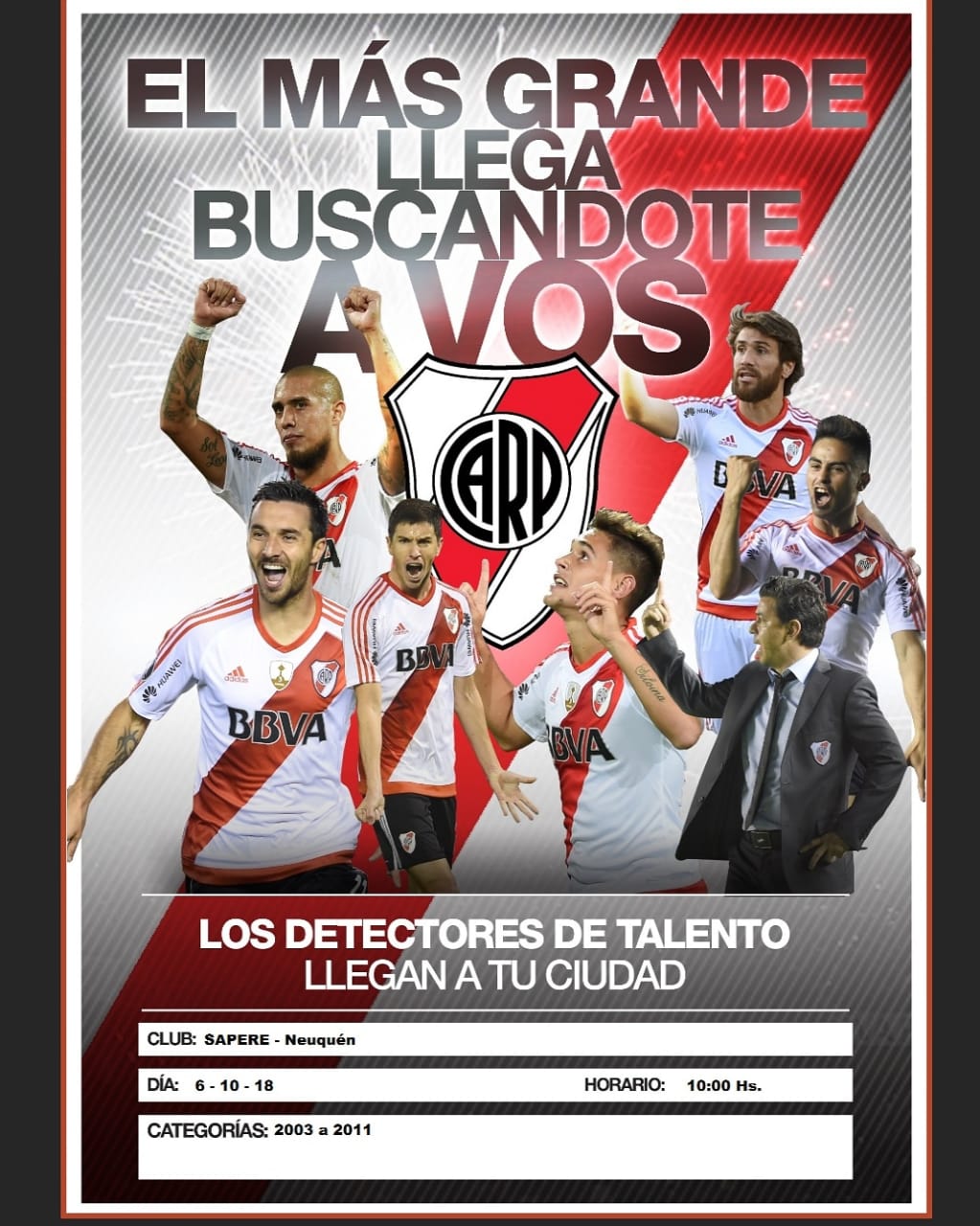 El Club Sapere recibirá este sábado una nueva prueba de jóvenes jugadores para River.
