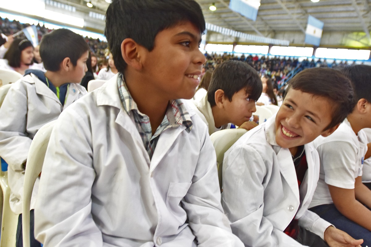 Al ritmo del cuarteto con «La banda suena», se dio inicio al acto que convocó a miles de roquenses. Fueron 16 las escuelas primarias que participaron de esta tradicional ceremonia que se realiza desde 2007.