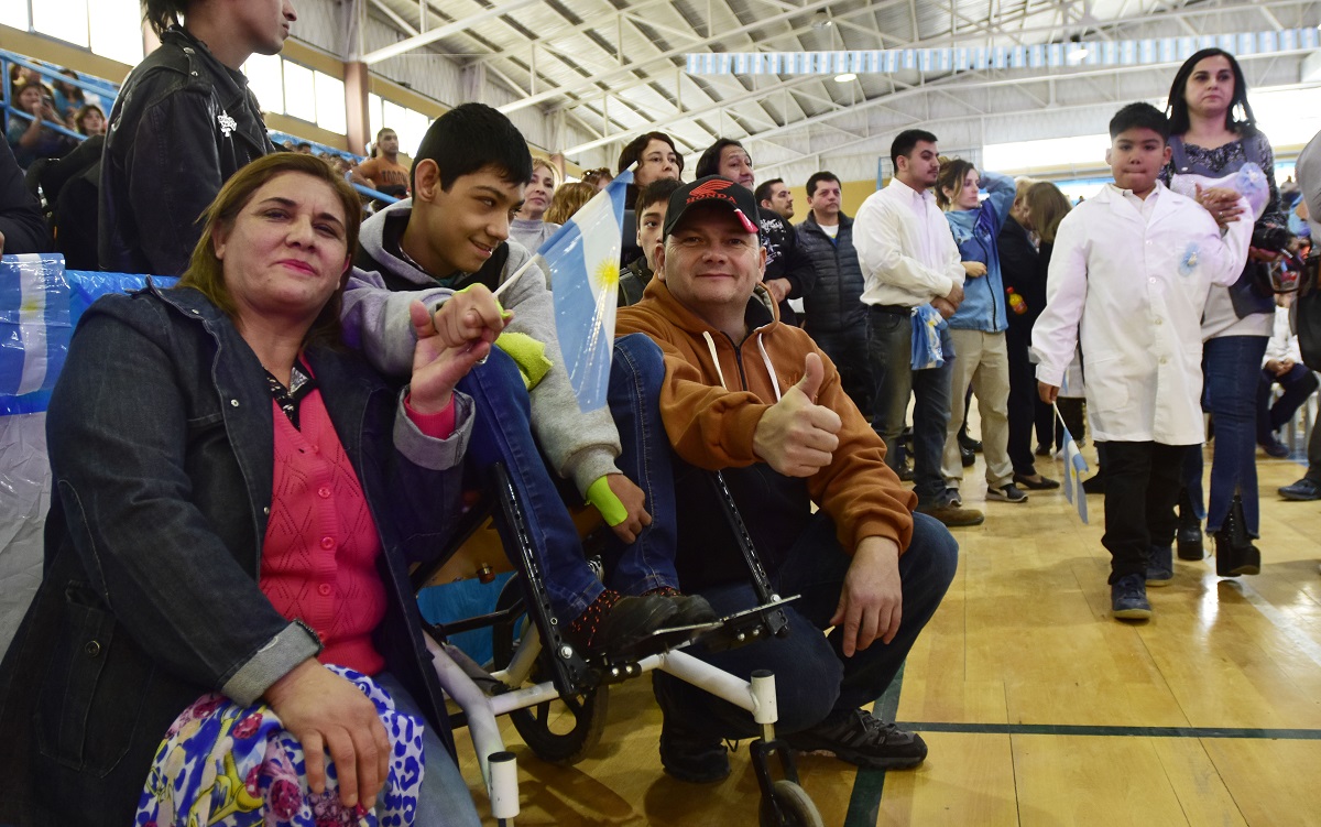 Un emotivo y masivo acto se realizó en el polideportivo ubicado en la calle Alfredo Palacios 946, de la localidad. Alrededor de 700 alumnos y alumnas juraron lealtad y respeto a la bandera argentina.