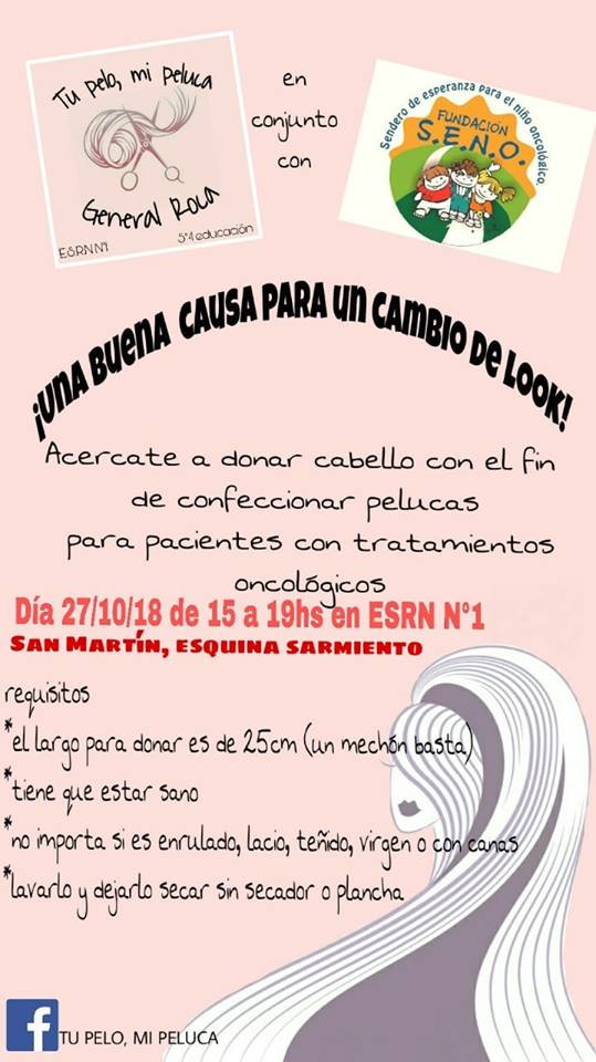 El proyecto “Tu Pelo, Mi Peluca” de estudiantes de la ESRN N°1 de Roca junto a la Fundación Seno Neuquén invitan a la comunidad a sumarse a una campaña solidaria.